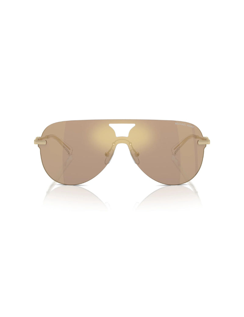 Estas gafas de sol cuadradas de Michael Kors vienen con una montura brillante en oro rosa y lentes con degradado de marrón claro a rosa.
