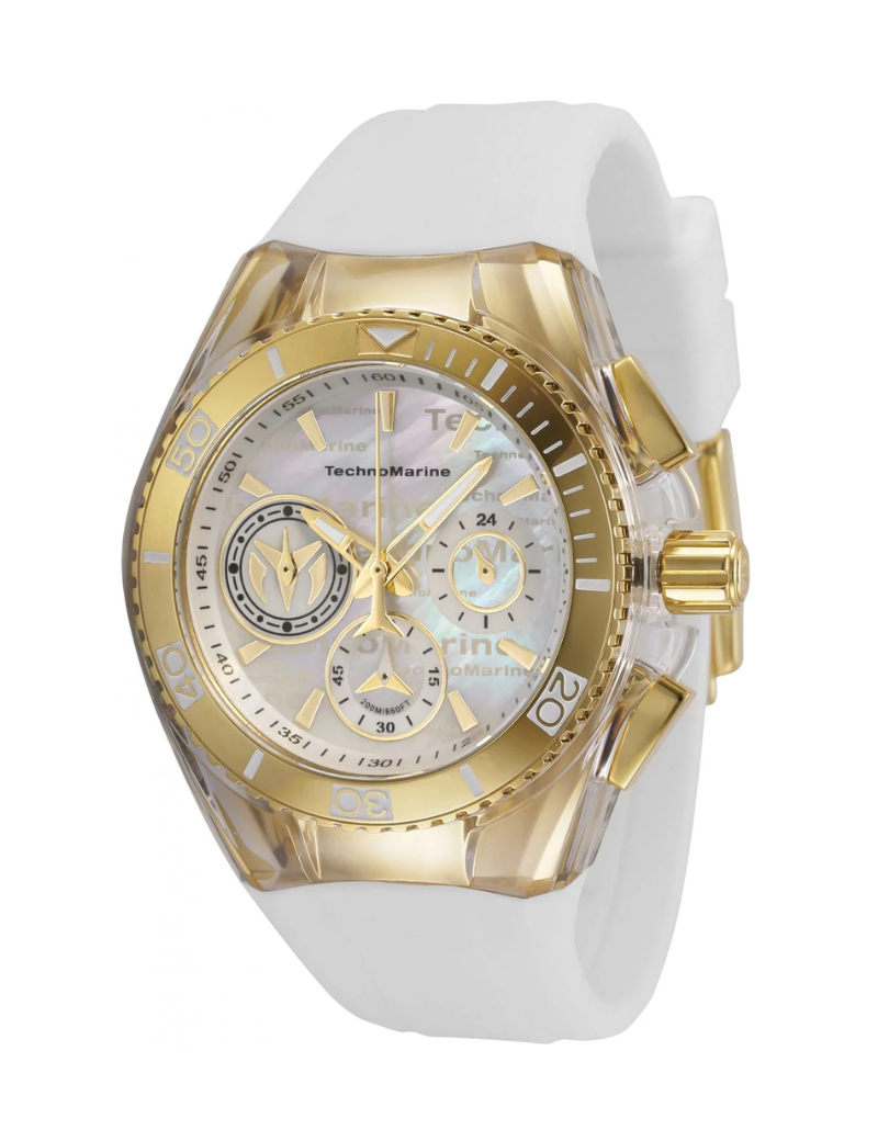 Reloj technomarine tm-120028 cruise para dama, tamaño de la caja 40.57 mm, pulso 195 color blanco, resistencia al agua hasta 200 metros