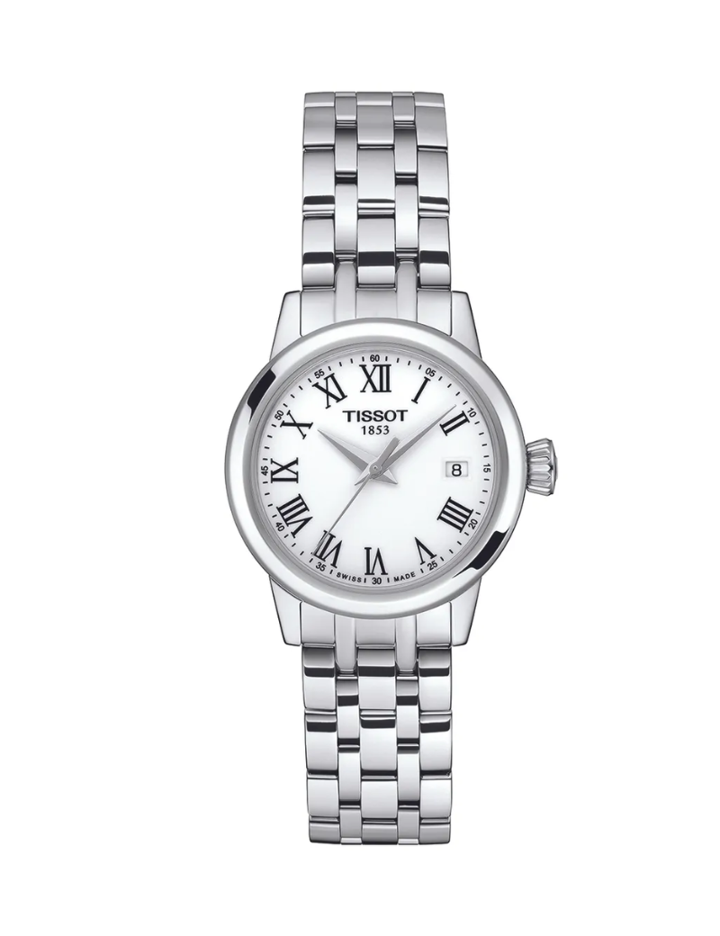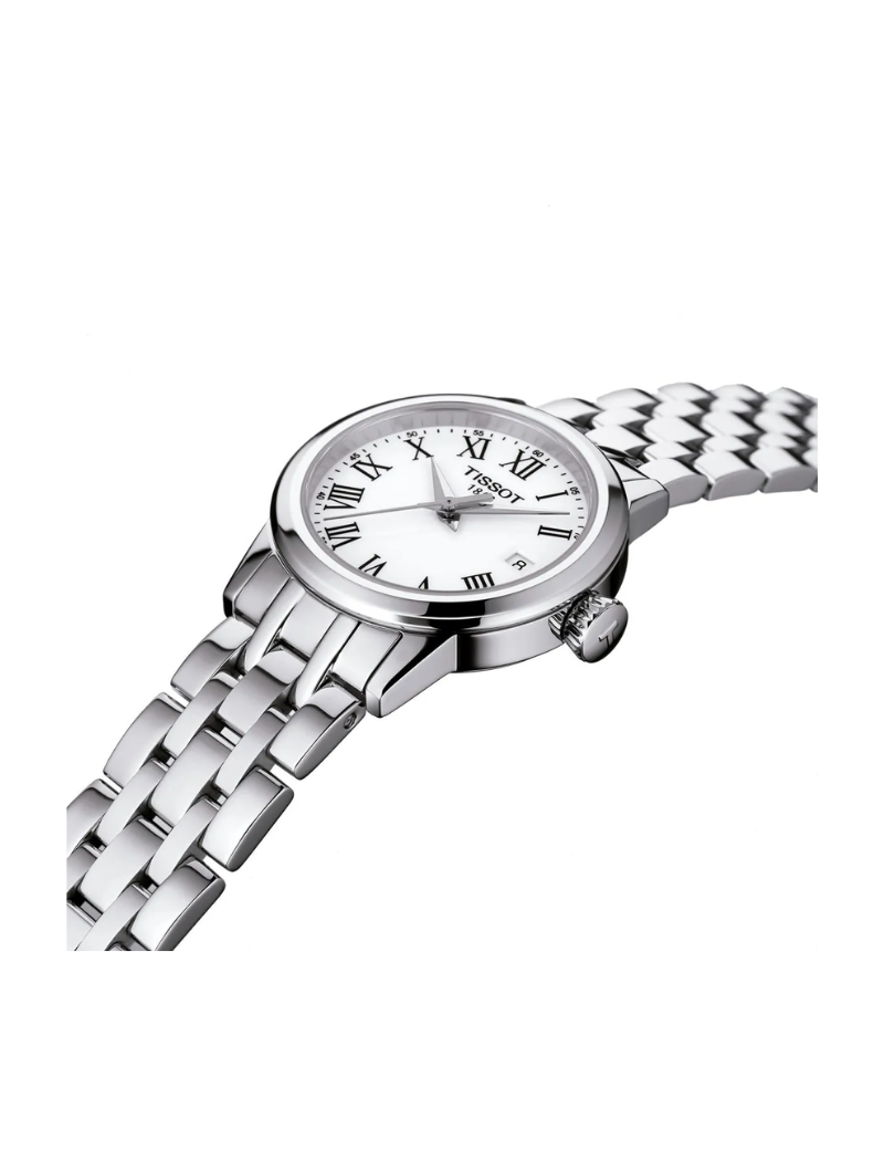 Reloj Tissot T129.210.11.013.00 PRX para dama, tamaño de la caja 28 mm de acero inoxidable, pulso de acero inoxidable / broche mariposa, color plateado, cristal zafiro, resistencia al agua hasta 50 metros.