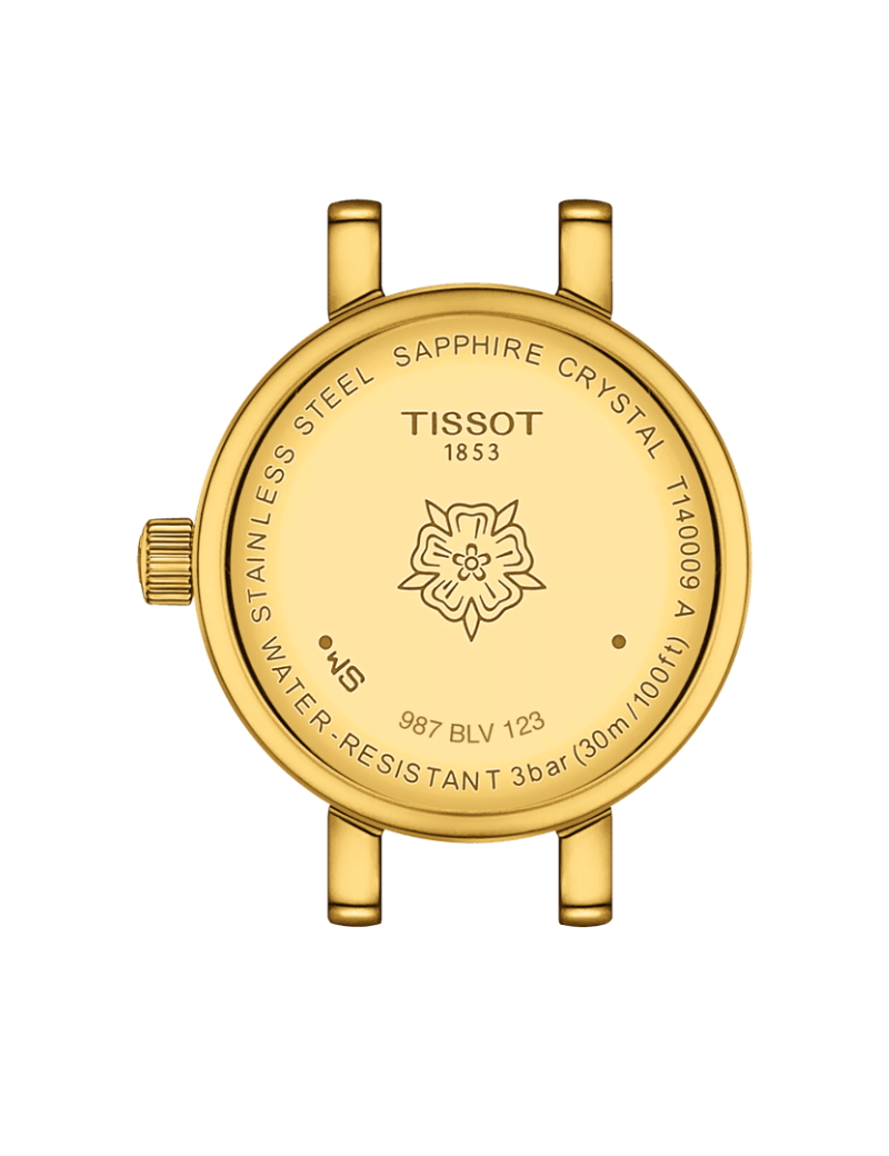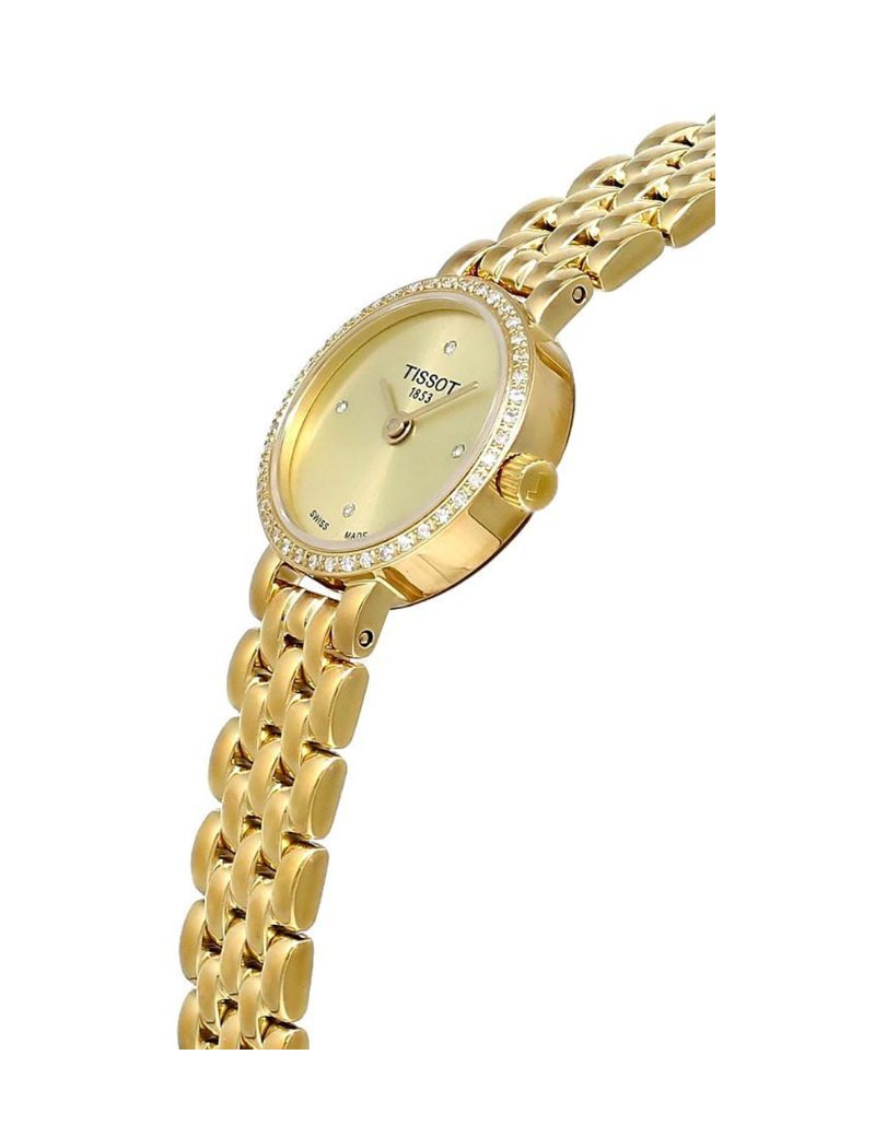 Reloj Tissot T140.009.63.026.00 Lovely Round para dama, tamaño de la caja 19,5 mm de acero inoxidable / diamantes, pulso de acero inoxidable / broche mariposa, color dorado, cristal zafiro, resistencia al agua hasta 30 metros (Salpicaduras).