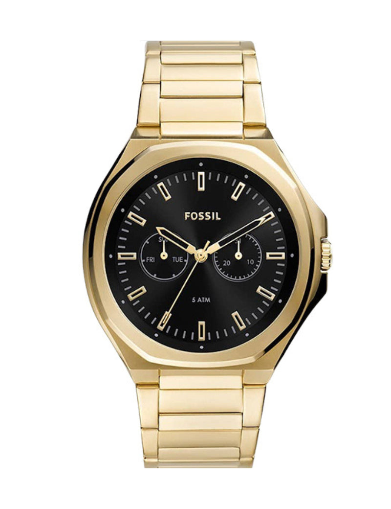 FOSSIL BQ2611 Este audaz reloj está equipado con una pulsera de acero inoxidable de dos tonos que tiene un acabado cepillado y utiliza un cierre plegable con botón pulsador para un ajuste seguro. Nuevo con caja y etiquetas. Auténtico garantizado