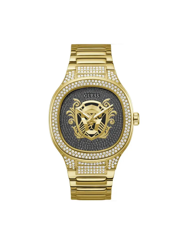 Reloj Guess Kingdom Hombre GW0565G1 con movimiento de cuarzo con segundero, caja acero de 45 mm color oro y correa de acero con cierre desplegable con pulsador