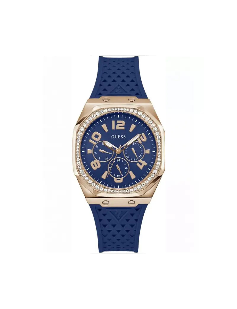 RELOJ GUESS ZEST DAMA GW0694L4 presenta combinaciones distintivas icónicas inspiradas por el estilo de vida GUESS, los diseños con las ultimas tendencias de las moda de los relojes GUESS ofrecen un estilo dinámico. Segundero, Pulso caucho, Tablero Azul, 40 mm.