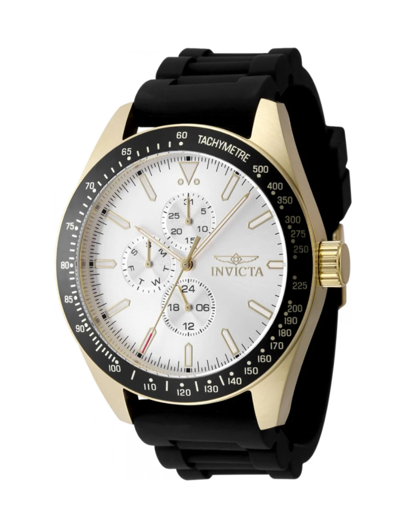 Reloj invicta 48857 aviator para hombres, tamaño de la caja 45 mm de acero inoxidable, tamaño del pulso 210 mm de silicona, color negro, pulso de 210 mm, resistencia al agua hasta 100 metros