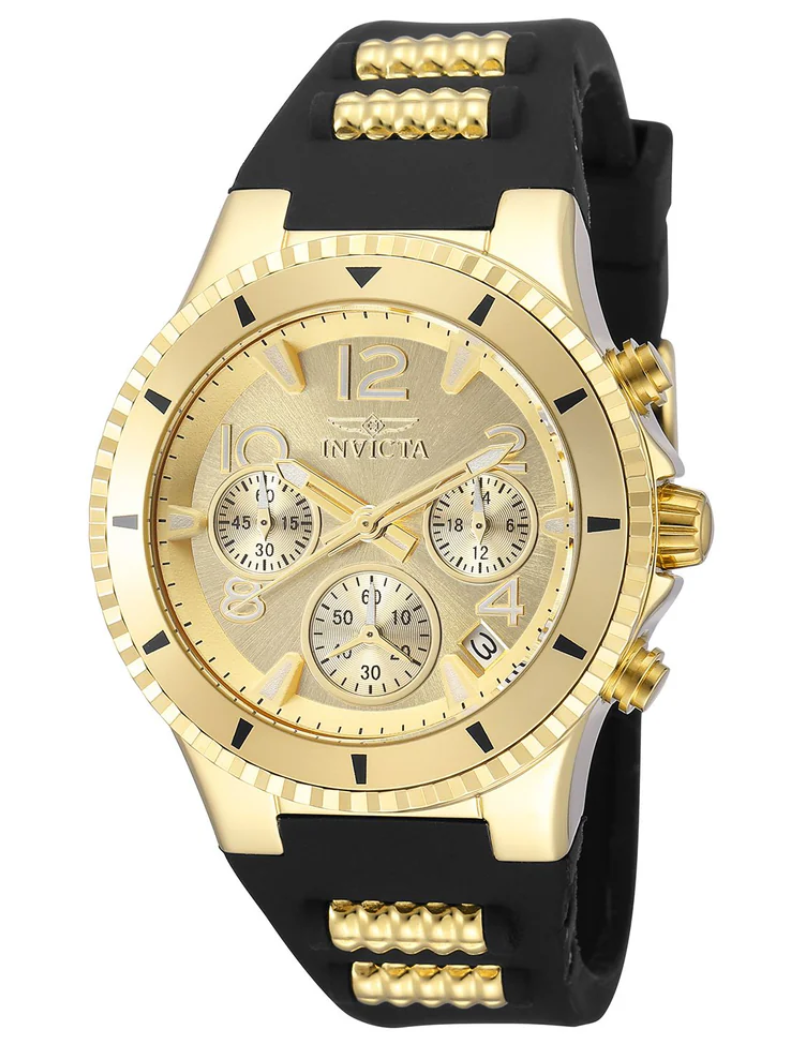 Reloj invicta 36909 blu para dama, tamaño de la caja 39 mm de acero inoxidable, tamaño del pulso 200 mm de acero inoxidable, silicona, color oro negro, pulso de 200 mm, resistencia al agua hasta 100 metros