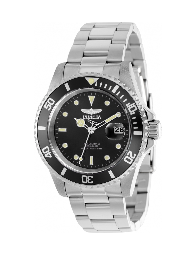 Reloj invicta 37155 pro diver para hombres, tamaño de la caja 40 mm de acero inoxidable, tamaño del pulso 180 mm de acero inoxidable, color acero, pulso de 20 mm, resistencia al agua hasta 200 metros, cristal mineral.